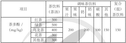 表 各種茶飲料中茶多酚的限量標(biāo)準(zhǔn)