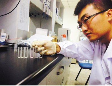 隨后,實驗人員把裝有樣品液的比色皿放到檢測儀器中檢測讀數,數值顯示在電腦屏幕上。
