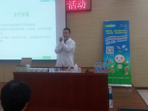 講師們對于居民普遍關心的食品安全問題進行講解,同時演示了蔬菜農藥殘留檢測,水中余氯檢測和亞硝酸鹽的檢測,并教授居民如何選擇安全放心的飲食。
