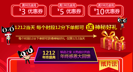 你還在為“雙11”沒享受到優惠而惋惜么?那么現在補救的機會來了,2015年最后一波,天貓ZYD旗艦店“雙12 ”讓我們再嗨這一次,把“雙11”沒搶到的補回來。為了感謝新老客戶對我們店鋪長久以來的支持,在雙12活動期間,我們推出了以下活動,感恩回饋各位: