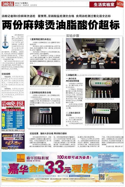 法制晚報報道兩份麻辣燙油脂酸價超標(biāo)