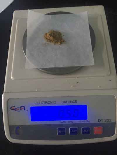 取0.5 g內容物。