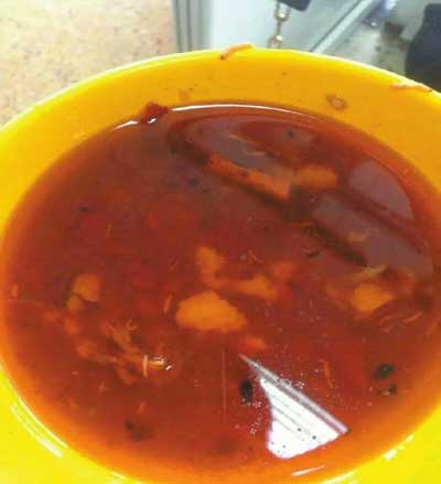 從該同學提供的照片上顯示,碗內(nèi)剩下的菜湯中有不少乳白色的小蟲,足有十多條。該同學表示,發(fā)現(xiàn)問題后,他本想找食堂管理人員反映,但因為不知道找誰,所以沒有當場說,而是用手機拍了幾張照片,回到寢室發(fā)到了QQ空間的“說說”。