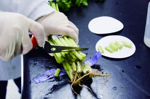 北京智云達技術工程師楊老師和王老師首先將樣品粉碎,再通過使用北京智云達自主研發生產的快速檢測產品:甲醛速測盒,對樣品溶液中的甲醛含量進行檢測。