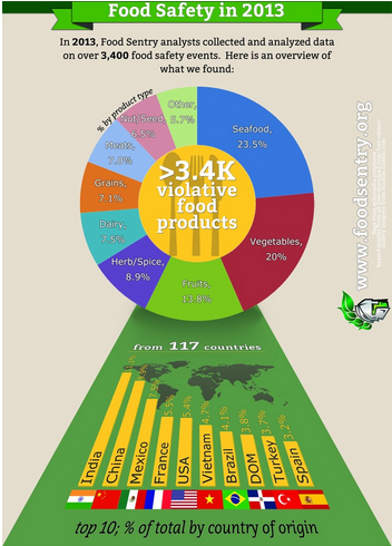這家機(jī)構(gòu)共統(tǒng)計(jì)超過3400項(xiàng)食品安全事件,涉及117個(gè)國家出口的海鮮、果蔬、乳品等食品。統(tǒng)計(jì)數(shù)據(jù)來自美國、歐盟以及日本的食品監(jiān)管機(jī)構(gòu)。