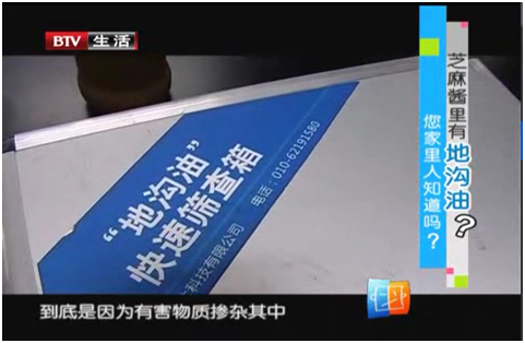 BTV北京電視臺《生活面對面》欄目專題報道了:芝麻醬里有地溝油?您家里人知道嗎?