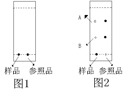使用紫外燈在陰暗環(huán)境下近距離照射的硅膠板如圖2,若位置A或B有點(diǎn)存在即說明有磺脲類物質(zhì)(除A和B 位置之外,其他位置的點(diǎn)與本次測試無關(guān))。