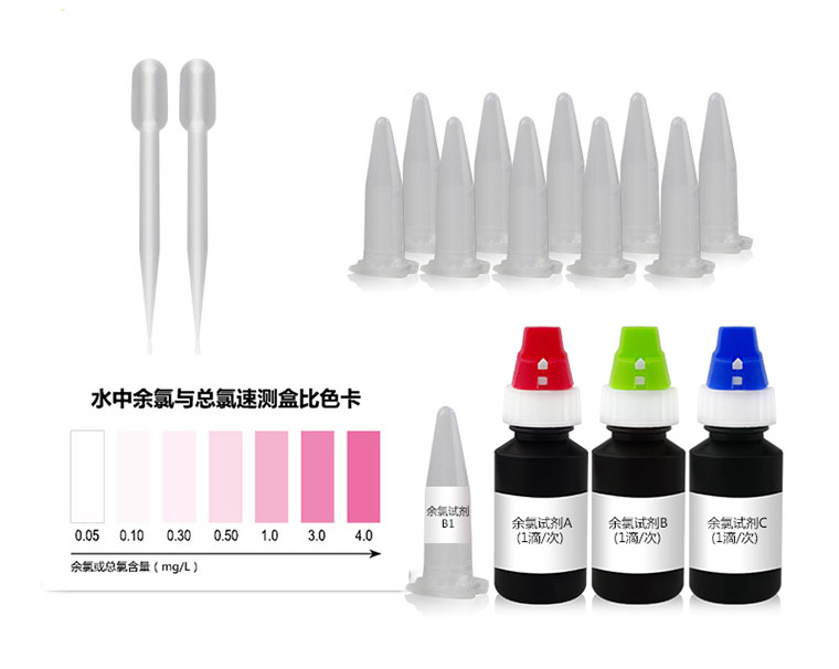 水中余氯與總氯與檢測試劑反應(yīng)生成紅色物質(zhì),含量越高顯色越深。