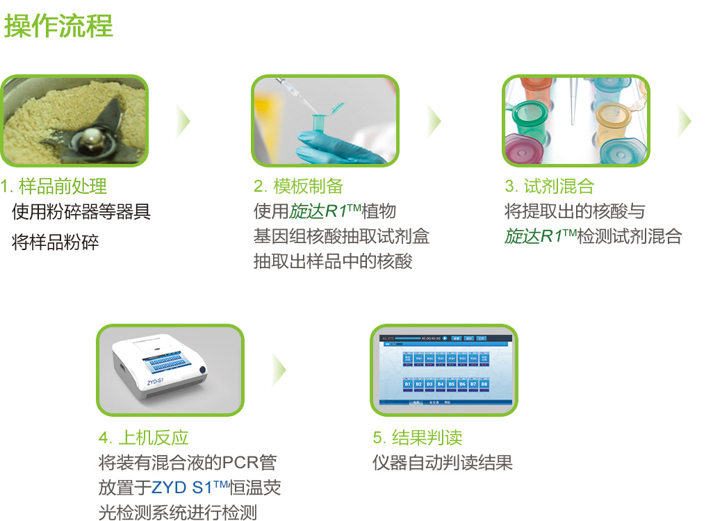 旋達R1?轉(zhuǎn)基因檢測系列試劑,基于恒溫擴增技術(shù)平臺,以特別設(shè)計的2對特異性識別檢測靶標的獨有基因序列,能快速、準確地鑒定檢測出樣品中是否含有特定轉(zhuǎn)基因成分。