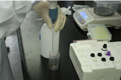 1、 用天平稱取一定量的雙七茶樣品,加入8毫升的農(nóng)殘緩沖試劑提取,提取時(shí)間2分鐘。