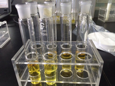 2、取6根試管,1-5號(hào)試管作為樣品管,6號(hào)為對(duì)照管。在樣品管加入3ml樣品液,在對(duì)照管中加入3ml緩沖液,隨后分別加入20ul顯色劑和50ul酶試劑,蓋塞混勻靜置10min。