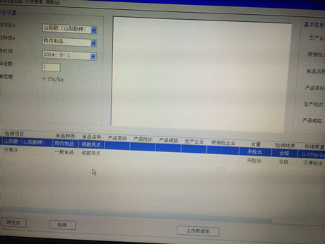 4、倒入比色皿中,置于PCS多功能食品安全檢測儀中檢測。檢測結果:兩個樣品均未檢出雙氧水。
