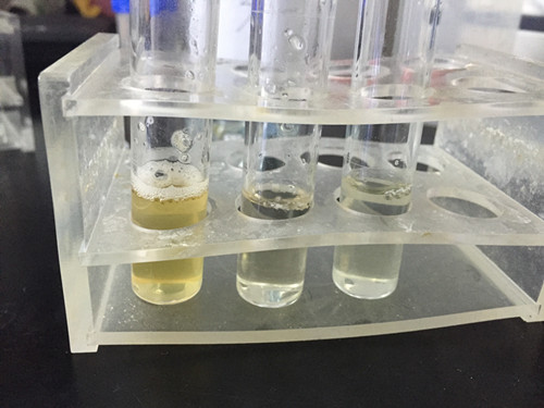 最后觀察實驗結(jié)果,發(fā)現(xiàn)三種蜂蜜稀釋液都沒有變色情況發(fā)生,因此判定沒有摻雜淀粉和糊精。