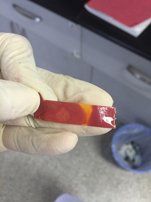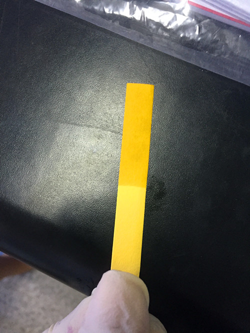 經過檢測我們可看到姜黃試紙條沒有變色,樣品為陰性樣品,不含有硼砂。