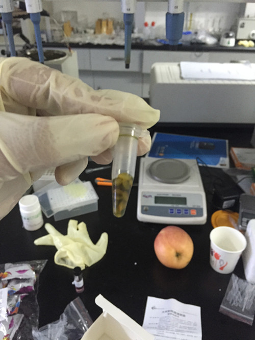 首先我們用小離心管裝15粒大米,加入我們檢測試劑。