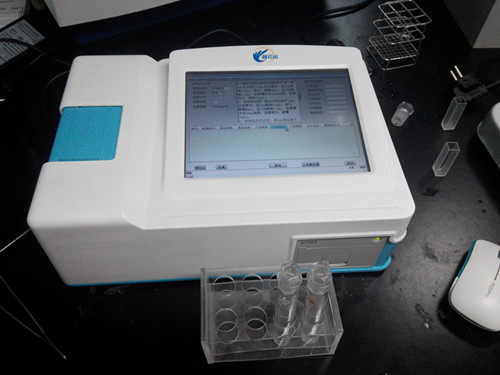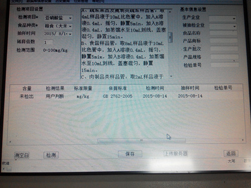 將取好的樣本加水稀釋后,進行震蕩,固態樣本盡可能的釋放亞硝酸鹽,搖晃后靜置5min,之后將稀釋液移取1ml到裝好檢測試劑的離心管中進行檢測