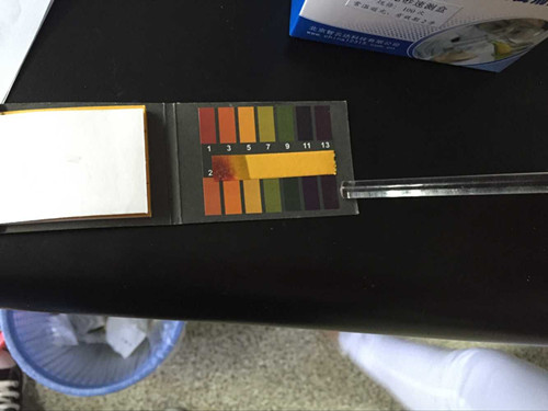 (2) 檢測(cè) 在試管中加入硼酸硼砂試劑使ph低于3,用硼砂試紙尖端沾取樣品溶液后取出,用電吹風(fēng)吹干后觀察試紙變色情況。