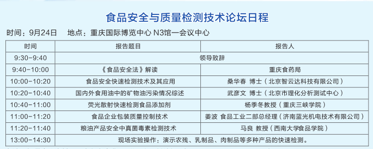 快檢培訓(xùn)班已在北京舉辦九期,第十期與往常不同,在重慶。您一定很好奇,為什么這次培訓(xùn)班安排在重慶,如果您關(guān)注我們的網(wǎng)站及微博、微信,您會發(fā)現(xiàn),智云達(dá)受邀參加由中國儀器儀表學(xué)會牽頭的四家機(jī)械行業(yè)專業(yè)組織2015年9月22日-25聯(lián)合在重慶國際展覽中心共同舉辦“中國(重慶)智能制造技術(shù)裝備博覽會”(簡稱智博會)。為了讓客戶和學(xué)員有參與高質(zhì)量技術(shù)論壇,學(xué)習(xí)更多除快檢常識外知識的機(jī)會,本次培訓(xùn)班特改為參加食品安全與質(zhì)量檢測技術(shù)論壇。