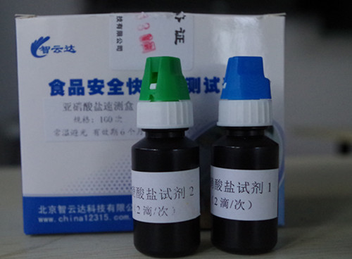 加入2滴試劑2搖勻靜置10分鐘后與標準比色卡對比,該比色卡上的數值乘上10即為樣品中亞硝酸鹽的含量mg/kg(以NaNO2計)。