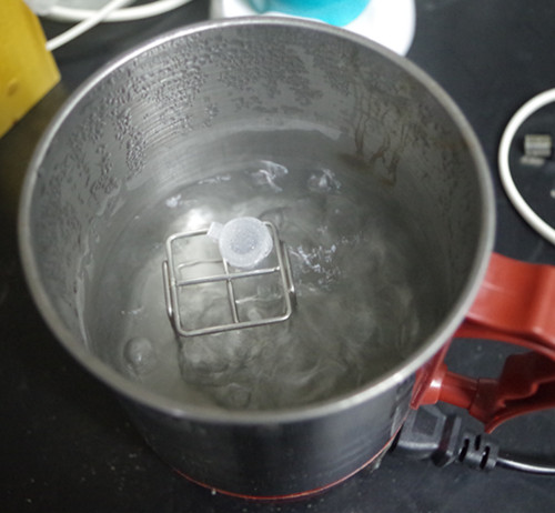 蓋上離心管蓋,放入沸水浴中的托架上加熱2分鐘后取出,上下?lián)u動6次作為待測液。