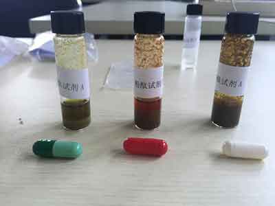 取1 g內容物。取一支試劑A,將所取樣品加入管中,蓋緊蓋子大力振蕩混勻1~2 min,靜置2~3 min,至上層溶液澄清。
