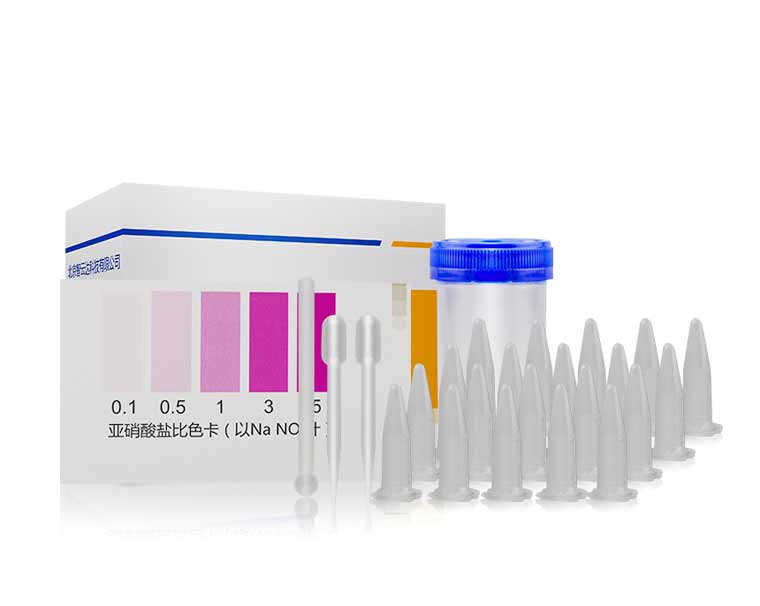 加入2滴試劑1,搖勻后靜置5分鐘。加入2滴試劑2搖勻靜置10分鐘后與標準比色卡對比,該比色卡上的數值即為樣品中亞硝酸鹽的含量mg/kg(以NaNO2計)。